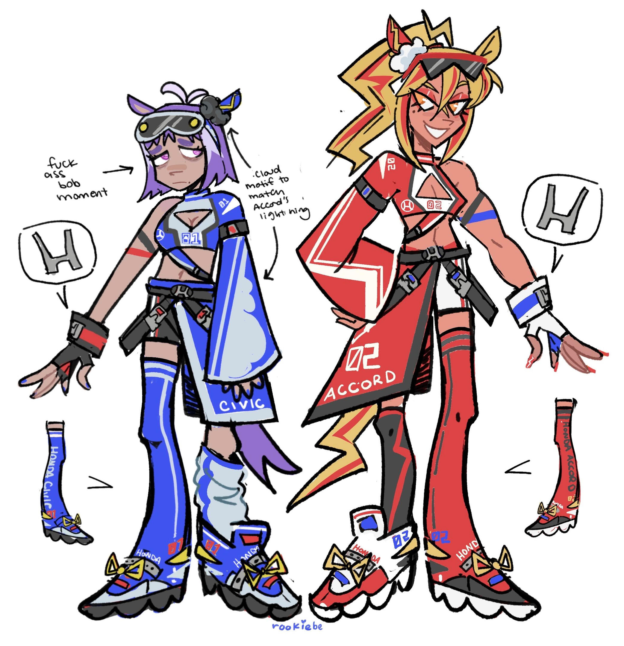 Born into the same prestigious family as Honda Civic, Accord grew up carrying the expectations of racing greatness her older sister abandoned. Though she’s accomplished everything her family ever wanted, and more, Accord can’t shake the feeling that she’s their runner up star.After spending several years in America alongside her trainer, Tanaka Mitsuyue, with whom she shares a deep and complicated relationship, Accord rose to near legendary status overseas. But not even that was enough for her. Now back at Tracen Academy, she’s has her sights on the elusive Triple Crown.Credit to Mogfist for helping with her design!