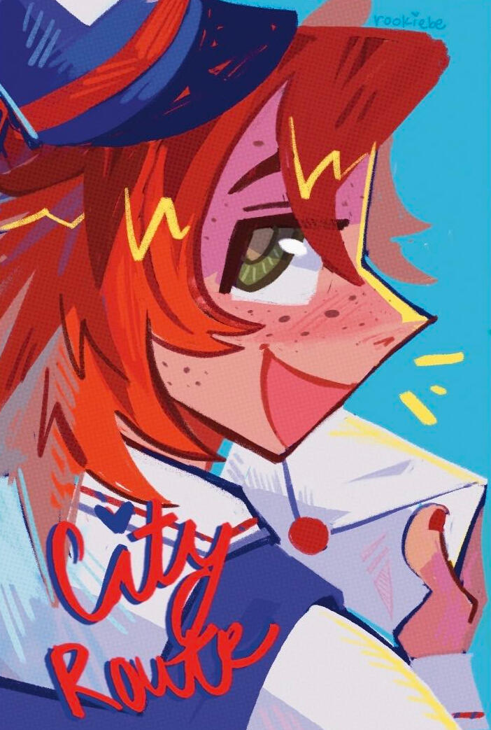 Rue grew up in a small town as one of many daughters in the City family, all of which work for the family's not too well known mail courier business. She does everything that is expected of her and more, yet she still is unable to stand out enough to turn any heads her way. She may pretend to turn her nose up at extra work, but she truly enjoys being depended on and having some sort of task to work through.After years of wearing hand-me-downs and having her name confused for her sisters', she found herself desperately longing to be a unique, recognizable Umamusume who is lauded and sought after.Her desire for attention and praise from other people eventually leads her to scraping together funds from her paychecks to send herself to Tracen Academy. She says it's to help get eyes on her family's business, but she has her own hidden ambitions in mind. But even as her name becomes more well known and she achieves the recognition she has always coveted, she still feels as though something is missing...City Route belongs to Darmie!