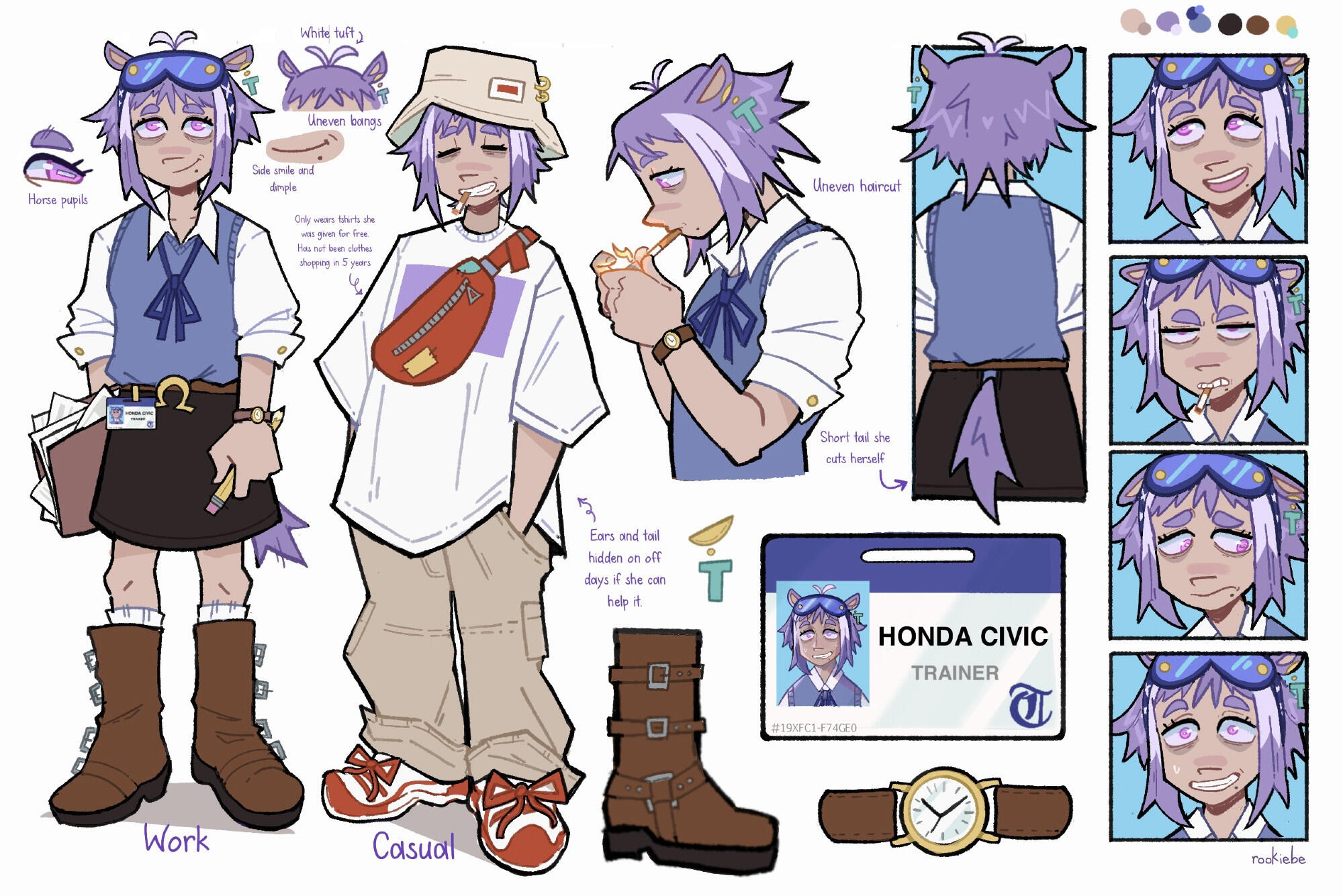 Civic comes from a wealthy family of racers. After her mother’s career ended early due to an injury, all the family’s hopes were pinned onto Civic when she was born. Gifted with the ideal body and a natural talent for racing, she seemed destined for greatness, but these expectations only deepened her growing disillusionment with the sport.Her early years were further marred by a boundary-blurring relationship with her trainer and family friend, Tanaka Mitsuyue, leaving her feeling detached from her body, and all it represented.When she stepped away from the track, the burdens Civic was carrying passed down instead to her younger sister, Honda Accord. Though Accord achieved much of what their family dreamed of, she grew to resent Civic for leaving her to shoulder the burden of it alone.Unable to reconcile her lack of passion for racing, she eventually hit rock bottom. Wanting to find a new way to be of value, she dedicated herself to earning her trainer’s license, working tirelessly until she graduated at the top of her class. Now at Tracen Academy, she hopes to help someone else fulfill their purpose -- no matter the cost.Honda Civic belongs to Brooke!